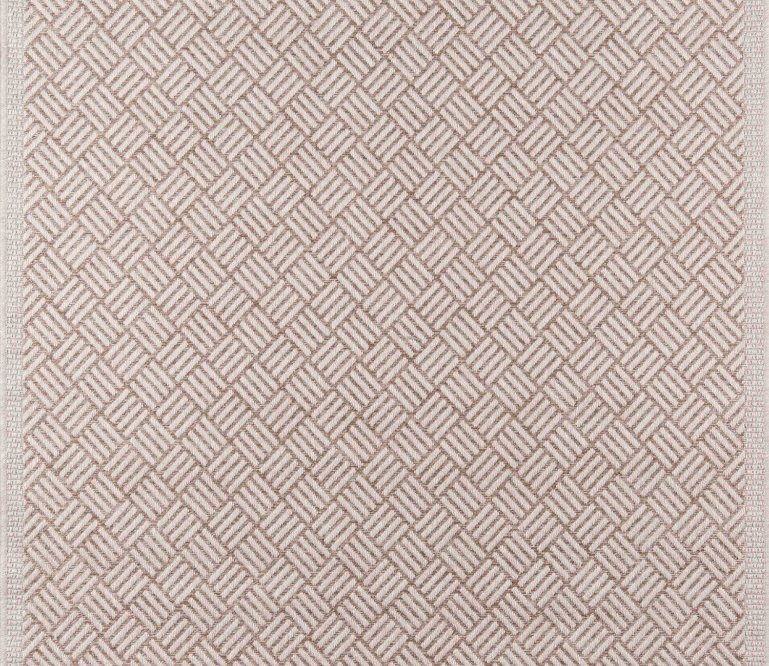 The island style of this indoor/outdoor area rug adds a touch of tropical texture in interior and exterior settings. The geometric rug design is seemingly simple from afar, but closer inspection reveals an intricate basketweave design interwoven from contrasting tan and ivory threads. Precision made from polypropylene fibers, the all-weather rug is a stain-resistant floorcovering suitable for styling both interior and exterior environments.