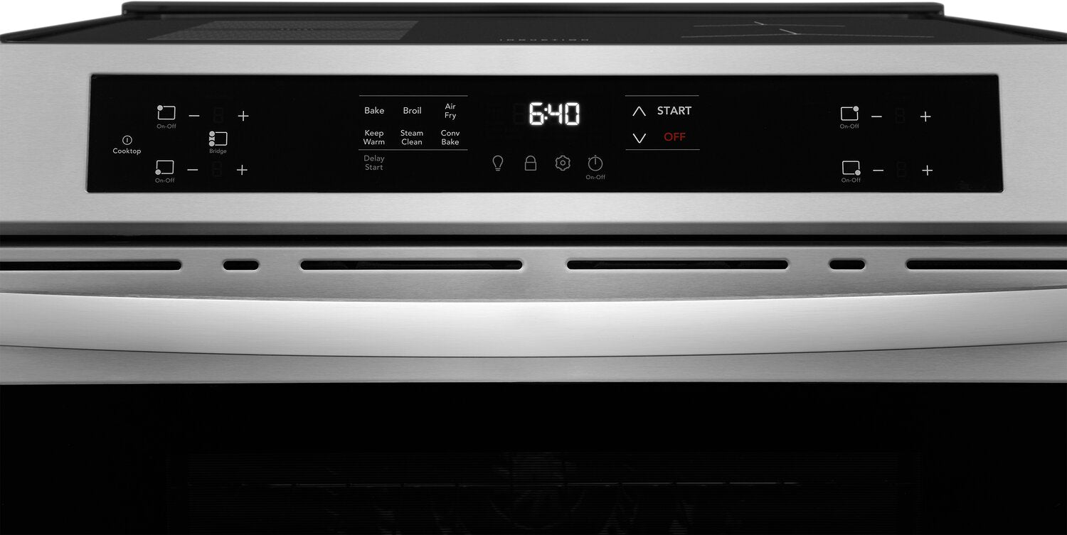 Easy-to-Clean Cooktop: Air Fry: Boils 2x Faster: Convenient Bridge Element: Convection Bake: 30-Minute Steam Clean: |