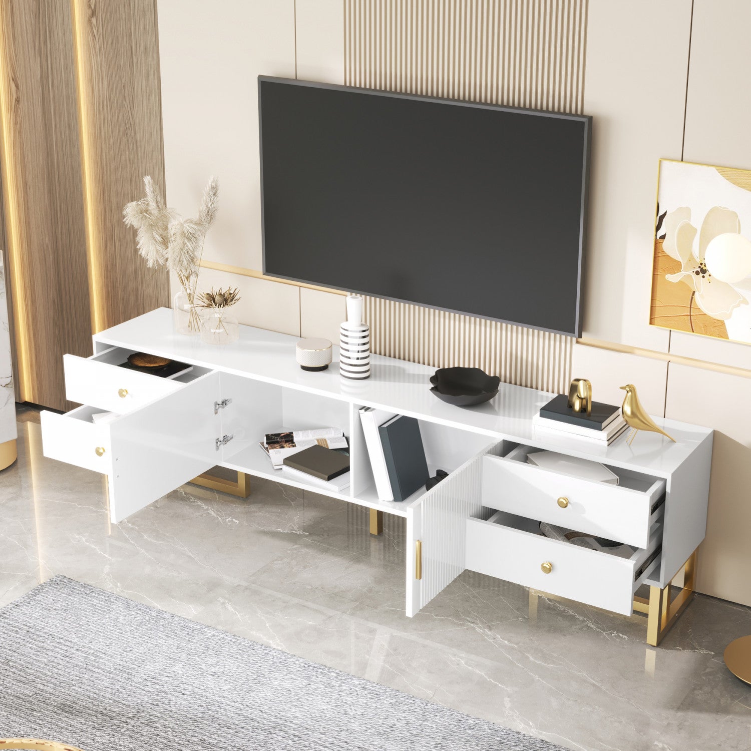 Gavin 68.8" TV Cabinet with Storage Drawers and Media Organization Function,White Tv Stand