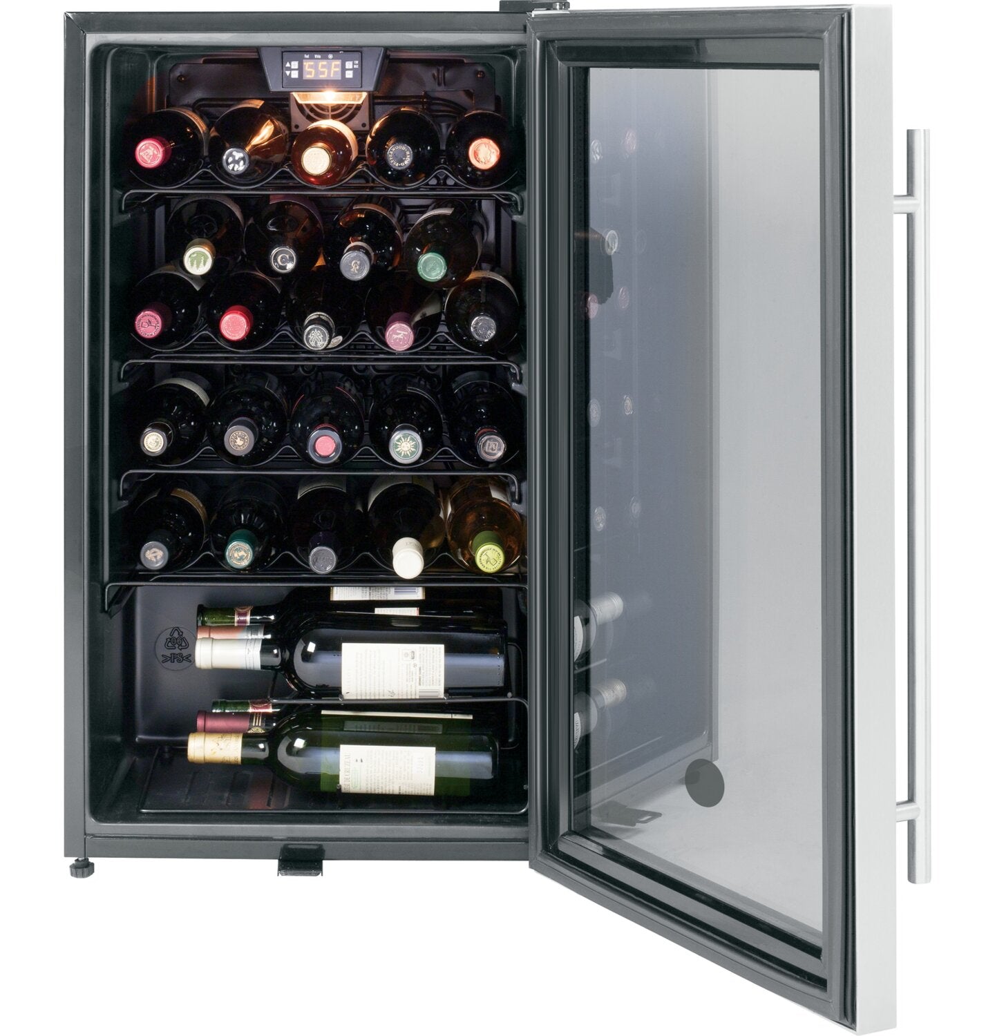 30 Bottle Capacity: Five Wine Racks: Stainless Steel Door: Electronic Controls: |