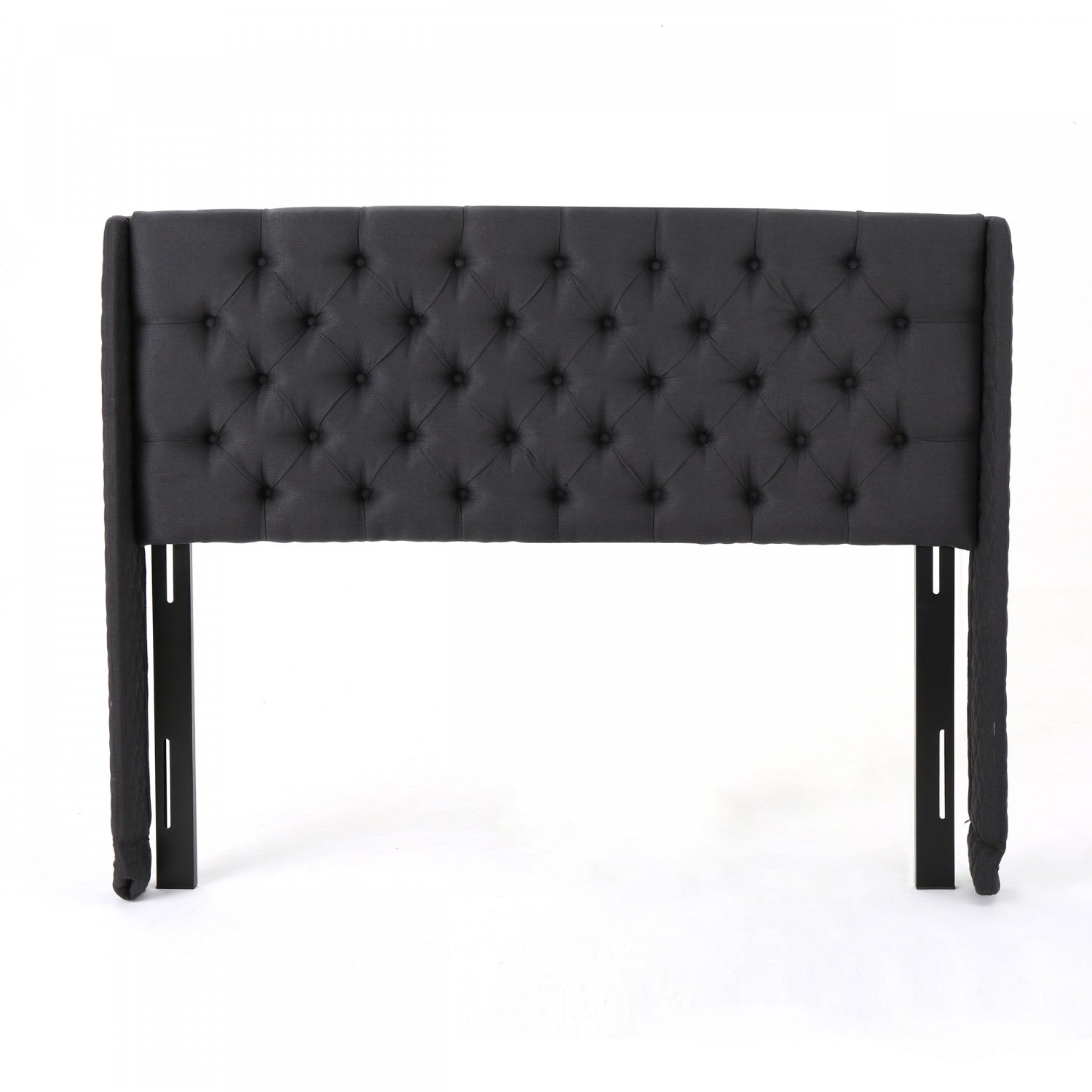 The upholstered wingback headboard brings sophistication and comfort to your bedroom. Wrapped in soft fabric, it features elegant button tufting and a graceful wingback silhouette that enhances any decor. Built with a durable plywood frame and strong iron legs, this headboard ensures lasting stability and support. Its mid-century inspired design blends seamlessly with modern interiors, creating a timeless focal point. Easy to maintain with wipe-clean fabric, this headboard offers both style and functionality for a refined bedroom upgrade.