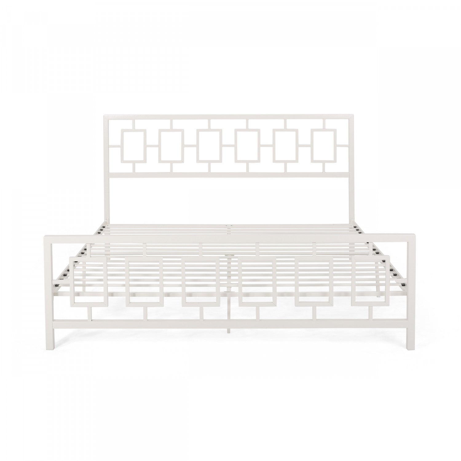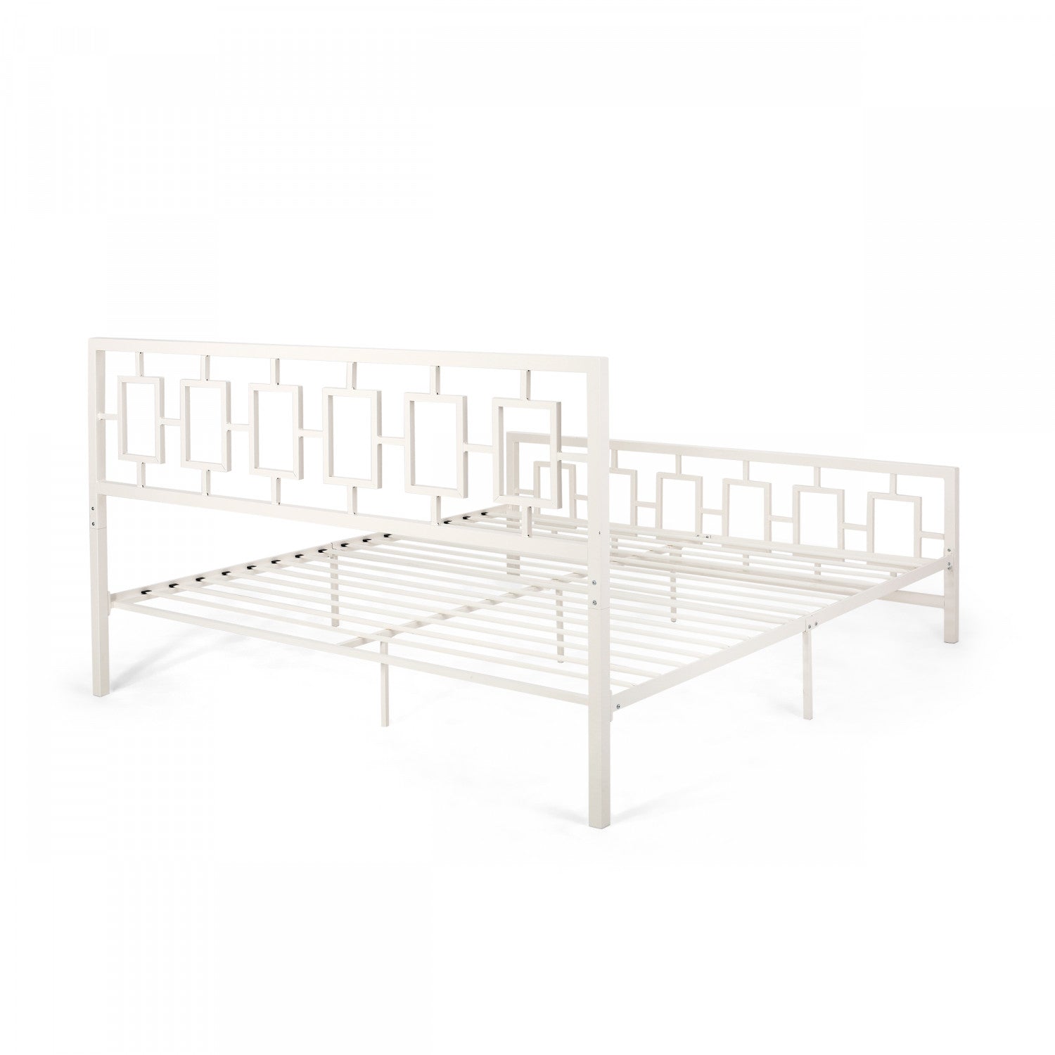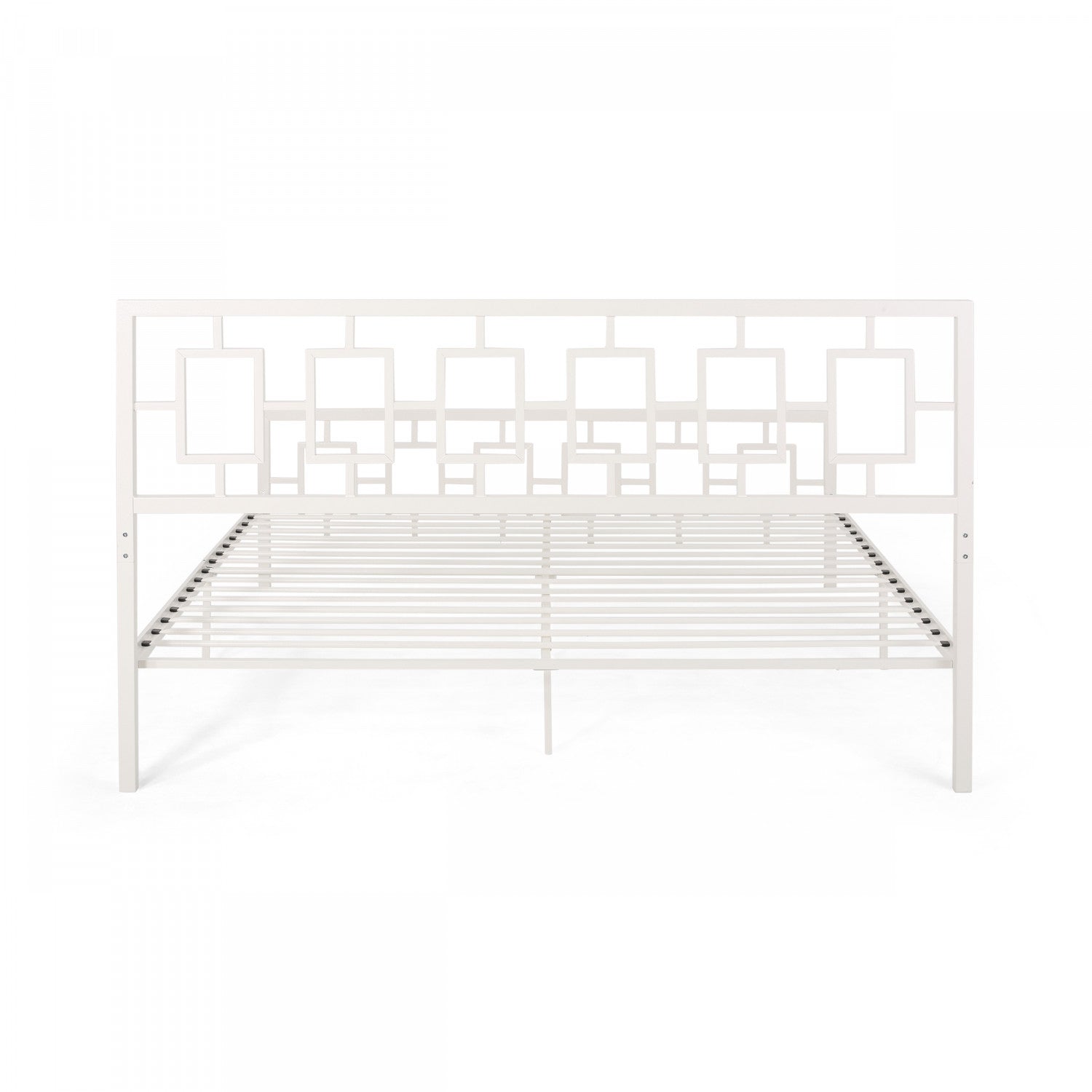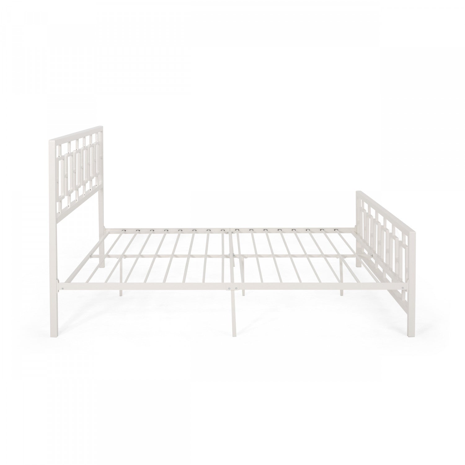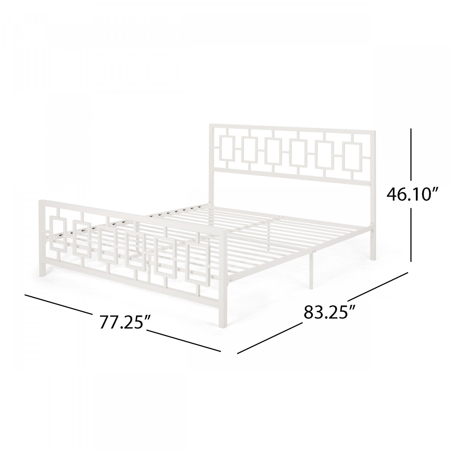 The metal bed frame combines classic elegance with modern functionality. Crafted from durable iron, it features a vintage-inspired headboard and footboard with stylish square metal accents. The platform design eliminates the need for a box spring, while 16 sturdy slats and three center support legs provide excellent mattress support. With 11. 8” of underbed clearance, it offers ample storage and easy cleaning. Sleek yet robust, this bed frame is easy to assemble with included tools, making it a practical and stylish centerpiece for any bedroom.
