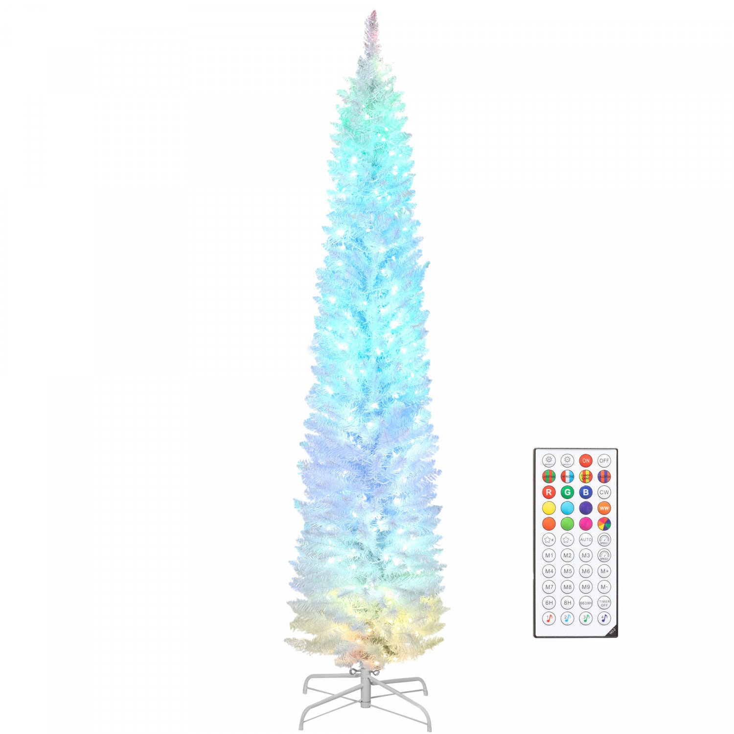 HOMCOM 7.5ft Christmas Tree with DIY Synchronized LEDs, Xmas Tree, White