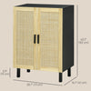 HOMCOM Boho Sideboard Buffet Cabinet with 2 Rattan Doors, Black
