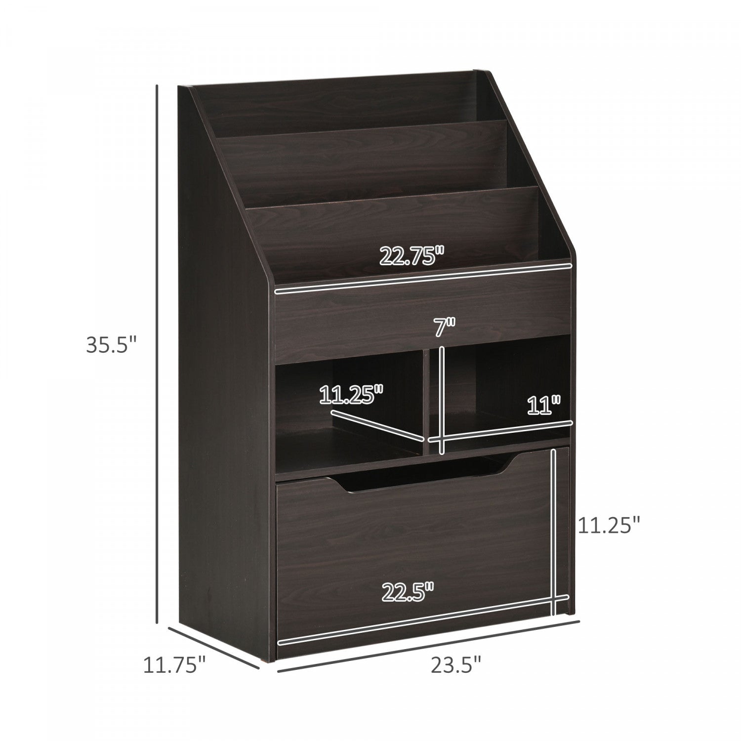 Homcom Kids Bookcase Multi-shelf Rack Organizer With Storage Drawer For Books For Reading Nook, Classroom, Bedroom, Playroom, Brown