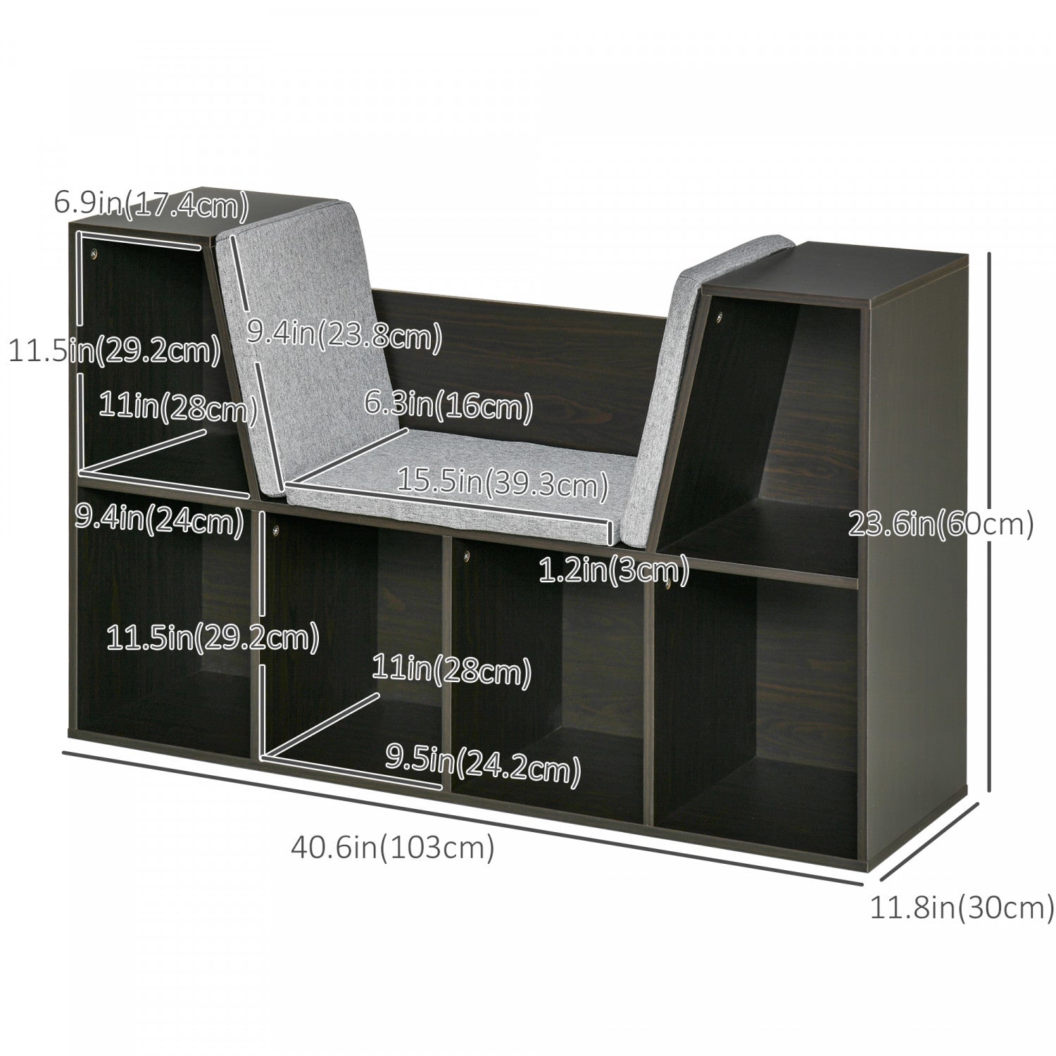 Homcom Kids Bookcase Toy Chest Kids Cabinet Storage Organizer Children Display Shelf For Toys Clothes Books Bedroom, Brown