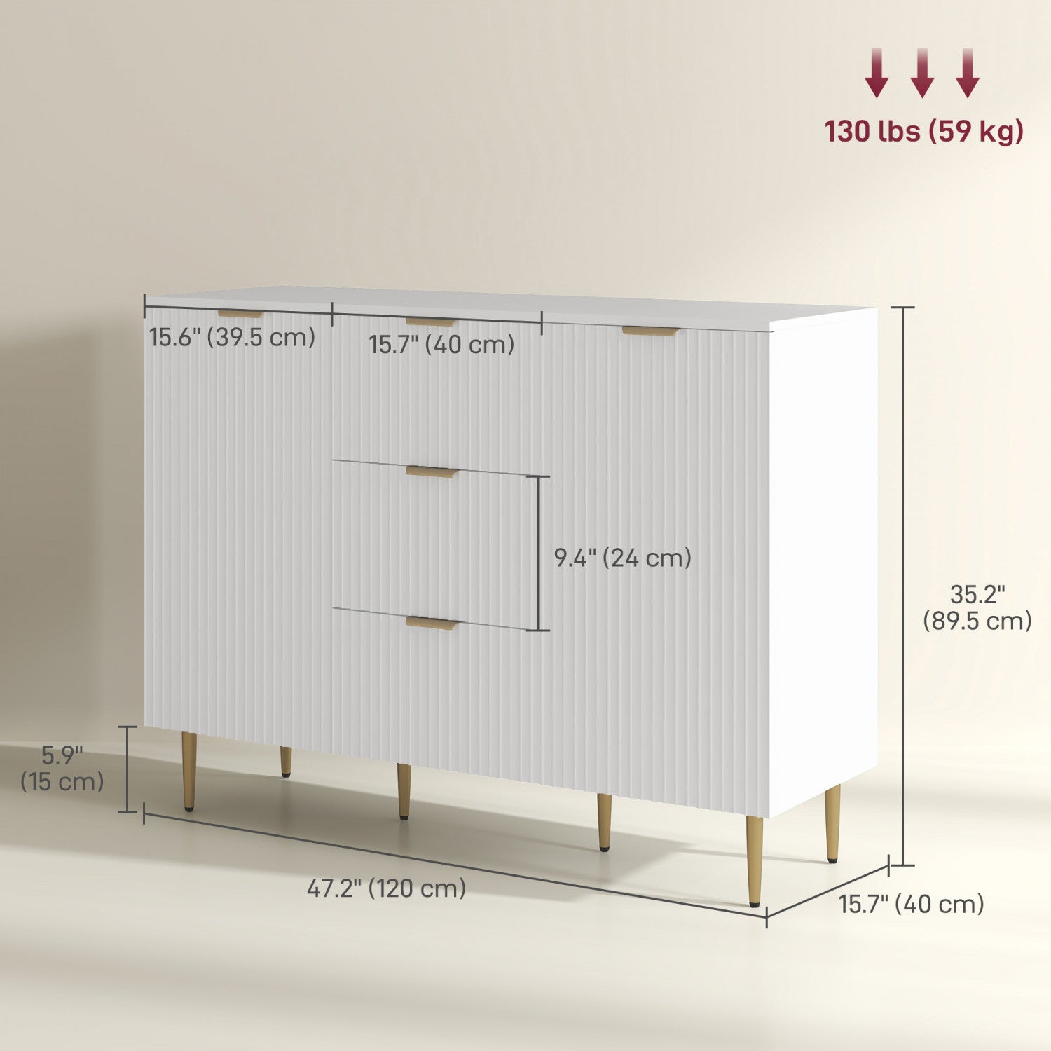 HOMCOM Sideboard Buffet Cabine w/ 3 Drawers and Adjustable Shelves, White