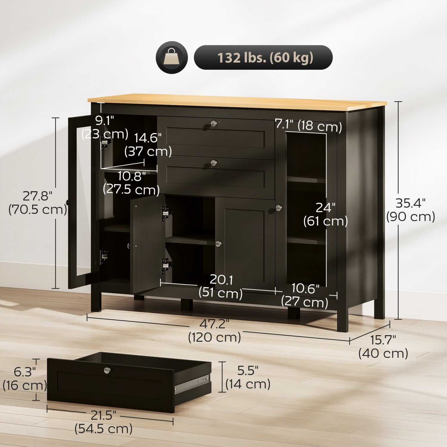 HOMCOM Sideboard Buffet Cabinet with 2 Drawers 3 Storage Cabinets, Brown
