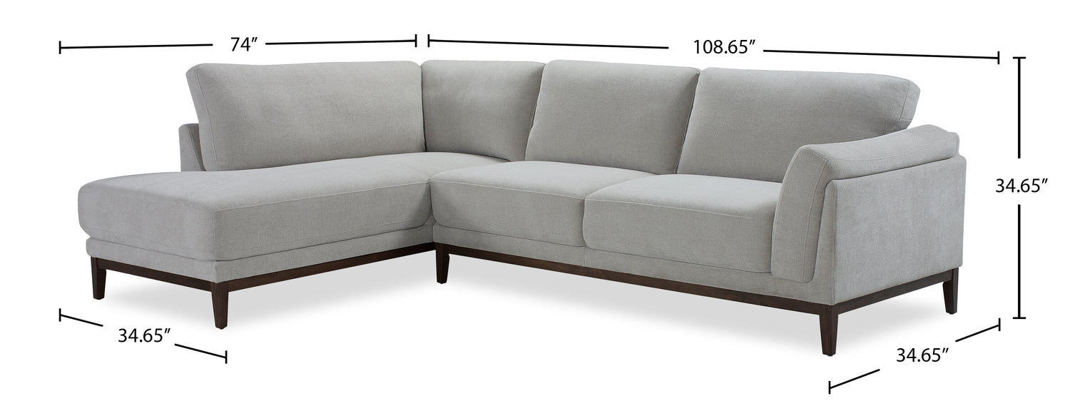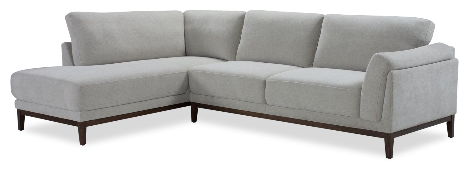 Horizon 2-Piece Left-Facing Fabric Sectional with Wood Base and Legs - Grey