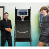 The huupe arcade comes with the huupe mini and the full huupe arcade, both custom designed to make the most advanced smart basketball arcade system in the world. This is the first home arcade system that tracks your makes, your misses, your total attempts AND from what distance each shot was taken, all while the ball rolls back to you for a whole new gaming experience. Oh, and the backboard is a full smart TV that let's you stream your favorite live sports and shows while you play.