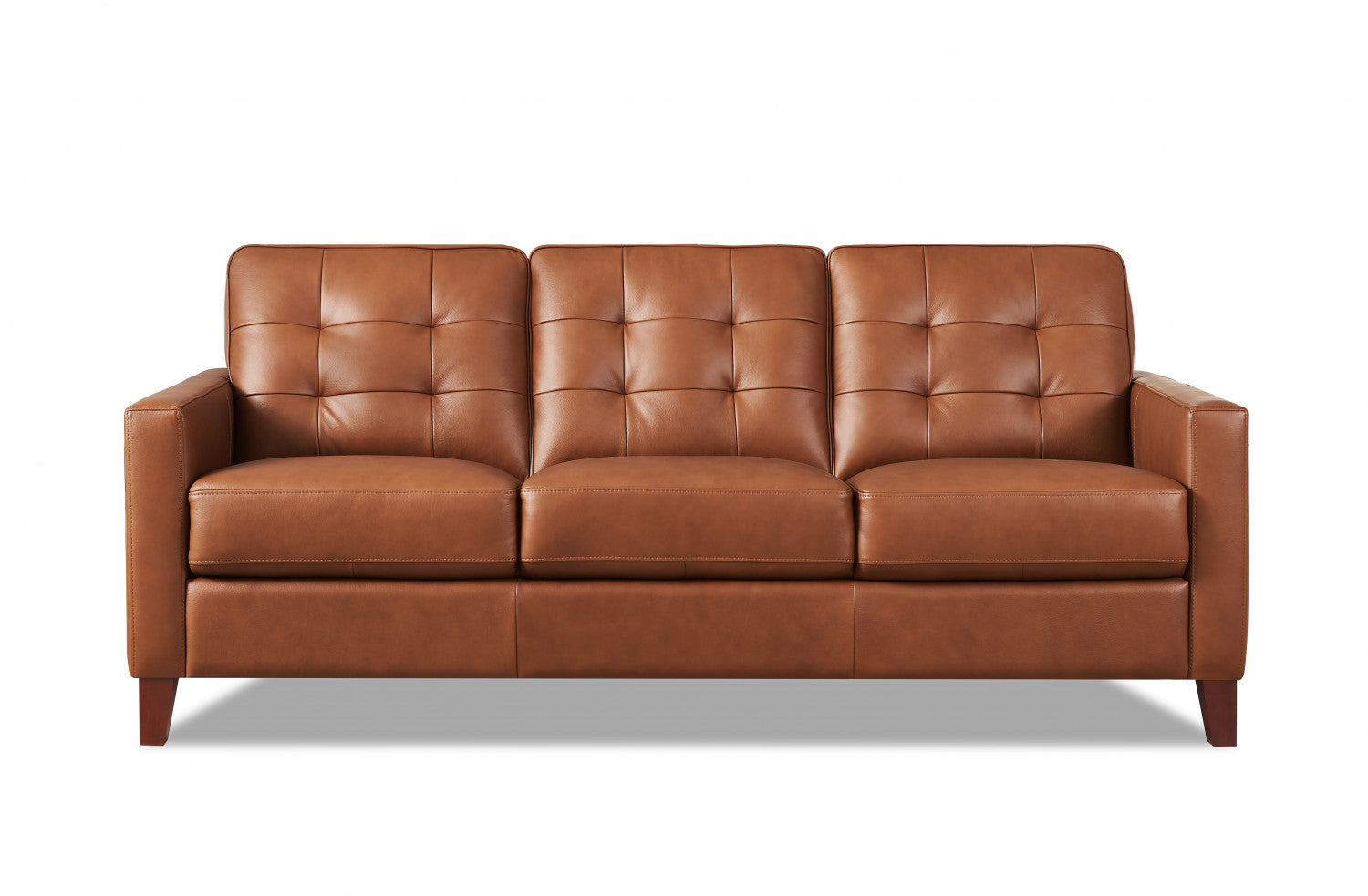The Aiden Collection design exudes sophistication with its meticulous detailing, characterized by tight, clean lines that seamlessly extend from the blind biscuit tufting in the back cushion to the sleek track arms. The integration of these elements is further accentuated by the presence of tapered solid wood legs, creating a harmonious and modern aesthetic.
