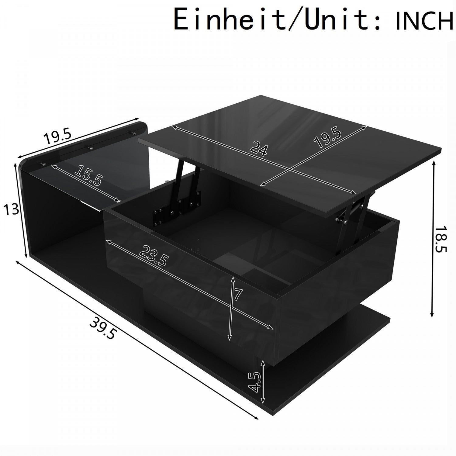Bring a touch of modern luxury to your living room with this high-gloss black coffee table. Designed with a tempered glass top and innovative lift-top function, it easily adapts for dining, working, or relaxing. The built-in led light strip, controlled via mobile app, creates a warm ambient glow that enhances your evenings. With both open and hidden storage beneath the lift-top, it keeps your space tidy and organized. Rounded corners add safety, while the sleek high-gloss uv finish reflects light for a stylish, upscale look.
