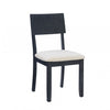 Classic farmhouse design is outfitted with modern comfort; this pair of side chairs are the perfect accent in traditional and contemporary settings. The solid acacia wood frames are finished in a dark charcoal black that reveals traces of the wood grain, contributing to an earthy, rustic character. Generously padded cushions are upholstered in beige linen and cotton fabric for easy maintenance and guaranteed relaxation. Purchase includes two chairs.