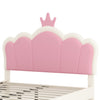 The upholstered princess bed brings a fairytale charm to any bedroom. Designed with a crown-shaped headboard in soft pu leather, it creates a playful yet elegant centerpiece your child will adore. Built with solid engineered wood, poplar wood slats, and sturdy legs, this bed ensures long-lasting stability and support up to 500 lbs. The platform design eliminates the need for a box spring, while the included slats provide firm mattress support. A perfect blend of durability, comfort, and whimsical style for your little princess.