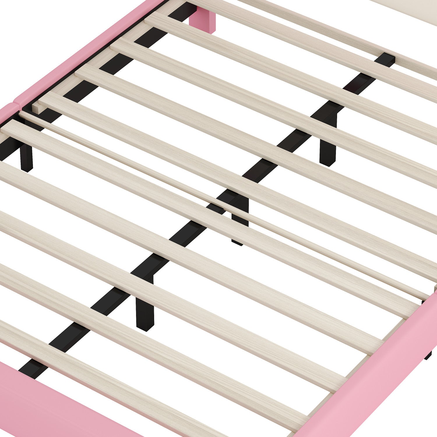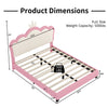 The upholstered princess bed brings a fairytale charm to any bedroom. Designed with a crown-shaped headboard in soft pu leather, it creates a playful yet elegant centerpiece your child will adore. Built with solid engineered wood, poplar wood slats, and sturdy legs, this bed ensures long-lasting stability and support up to 500 lbs. The platform design eliminates the need for a box spring, while the included slats provide firm mattress support. A perfect blend of durability, comfort, and whimsical style for your little princess.