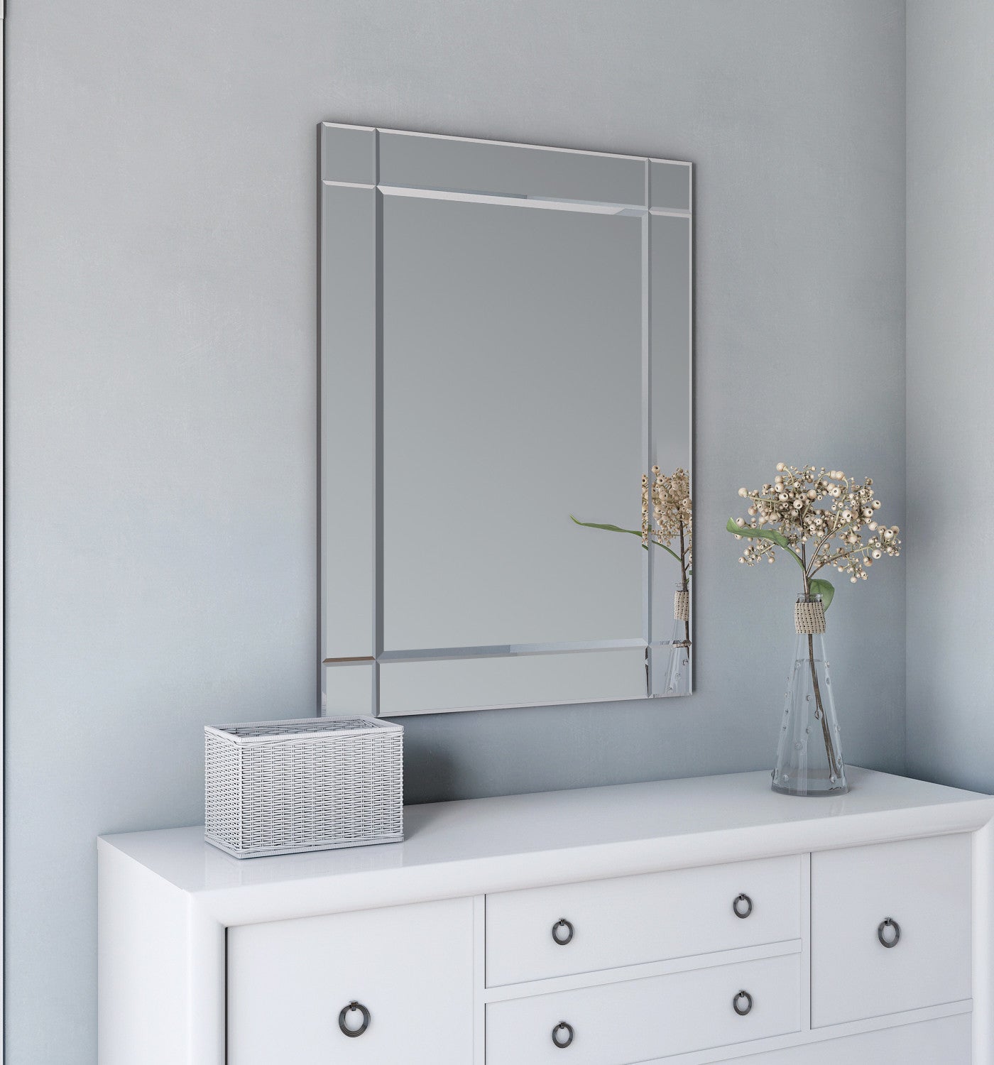 This all-glass mirror brings elegance and looks great in any space. A clean modern design that fits with any decor. This mirror will freshen up the look of your bathroom, bedroom or hallway and offers durability and style all in one.