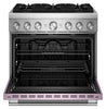 Dual Fuel Range: Even-Heat True Convection: Two 20,000 BTU Dual-Flame Burners: Integrated Wok Grate: No Preheat Air Fry Mode: Customizable Design: |