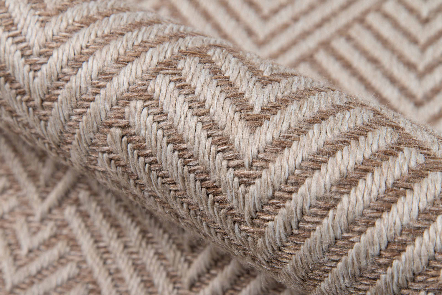With its graphic repeat of overlapping angles, this modern area rug is an elegant accessory to complete the ultimate outdoor room. Pointed shapes throughout the progressive geometric design suggest a serpentine scale pattern, while the natural beige and off-white tones are a neutral accompaniment to every color palette. Precision made from polypropylene fibers, the all-weather rug is a stain-resistant floorcovering suitable for styling both interior and exterior environments.