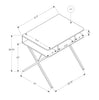 | Accent Details | Matte silver criss-cross legs |