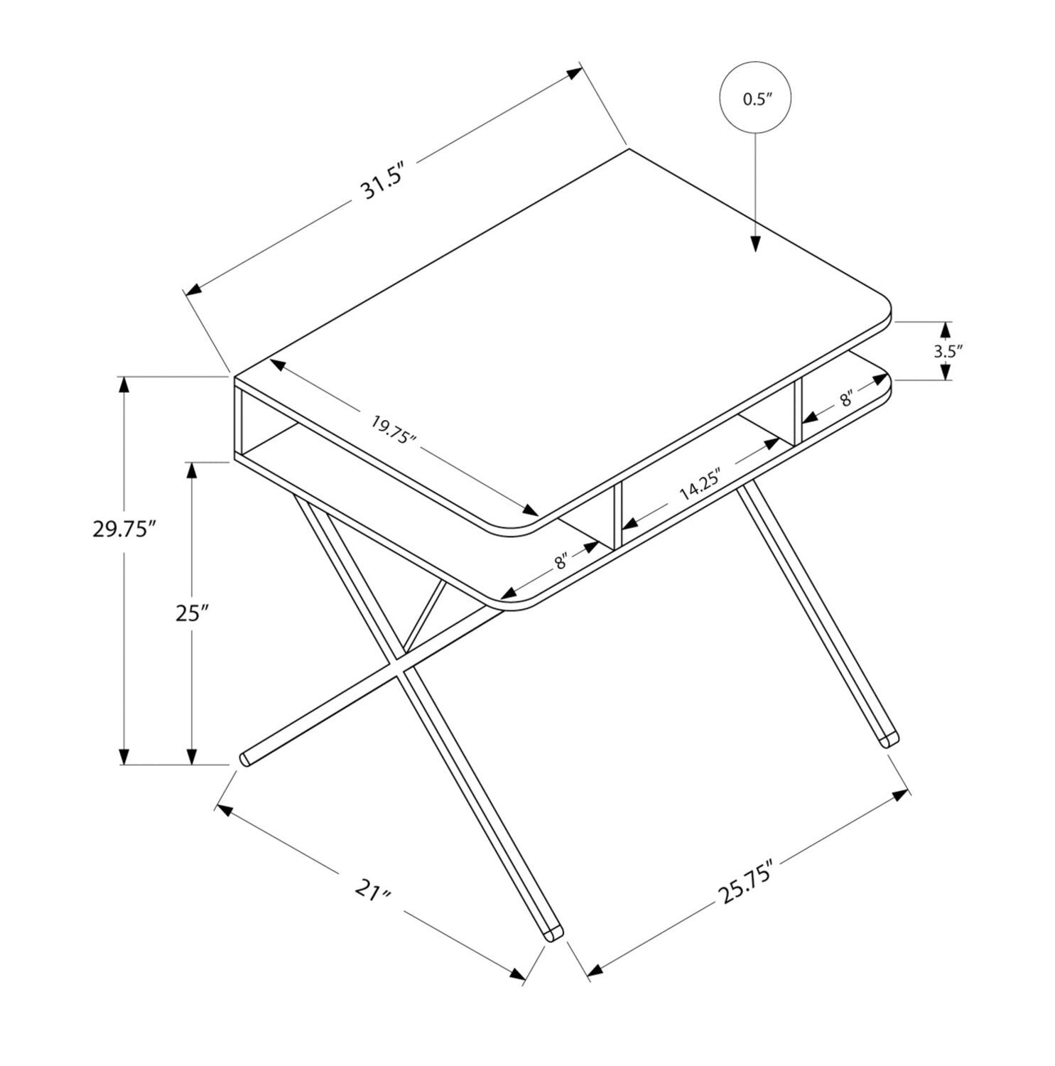 Width: 31.5" (80.0 cm) Height: 29.75" (75.6 cm) Depth: 21" (53.3 cm)