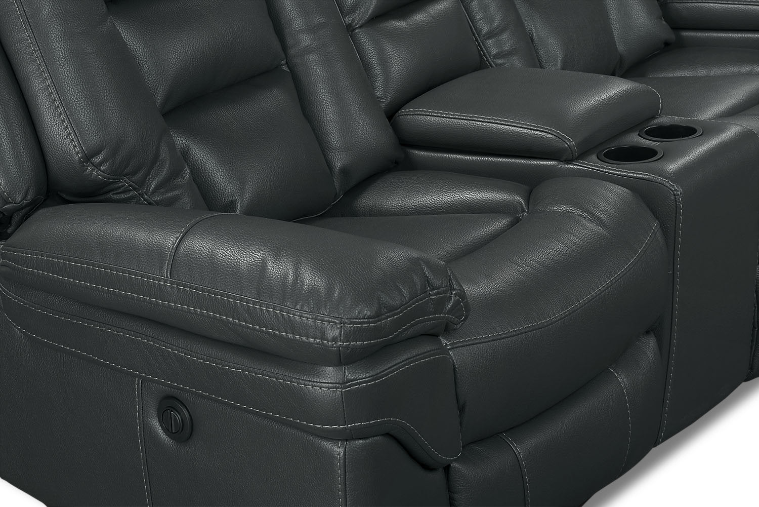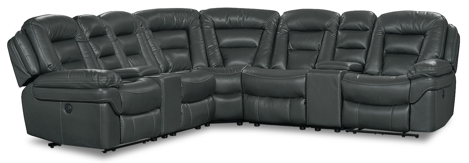 Leo 7-Piece Leather-Look Fabric Power Reclining Sectional with Storage Consoles and Cupholders - Grey