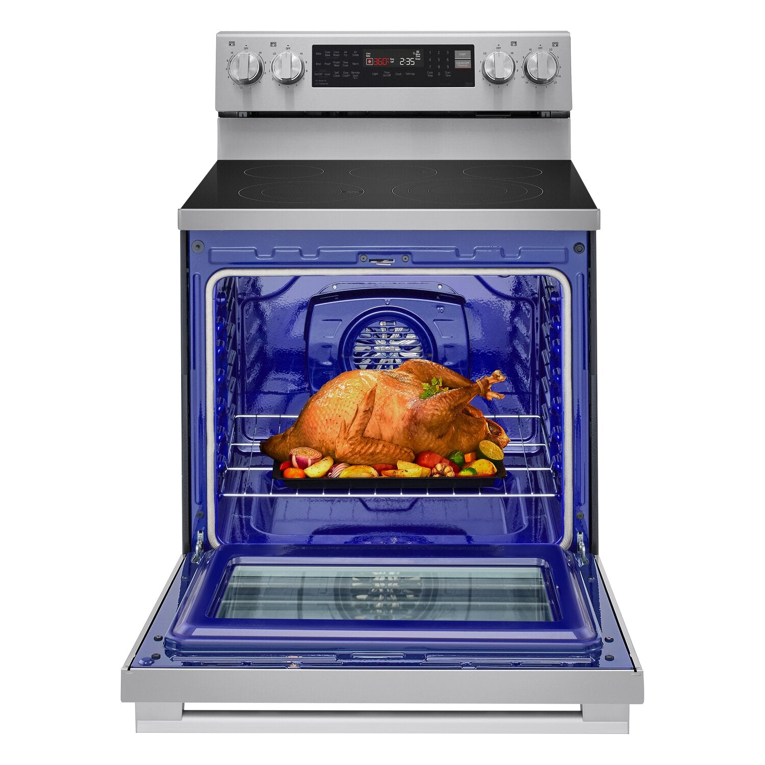 Flexible 2-in-1 Elements for your Cookware: Crispy Flavour to Feed a Crowd: Get Superior Results with ProBake Convection: Room for the Turkey and Sides: A Smarter Home Starts with the LG ThinQ App: Keep Your Oven Clean Without the Elbow Grease: |