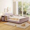 Lily Velvet Upholstered Grounded Bed with Desk and Stool,Full Size,Pink Full Bed