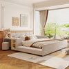 Lily Velvet Upholstered Grounded Bed with Desk and Stool,Queen Size,Beige Queen Bed