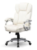 Work in comfort and style with this Lodwig deluxe office chair. Sitting doesn't need to cause you pain – adjust the chair using the tilting back support and gas lift. Swivel and roll your way around your office thanks to the moveable chair base. Plus, the cushioned back and seat offer a comfortable resting spot, while the white faux leather cover makes this chair an attractive addition to your home.