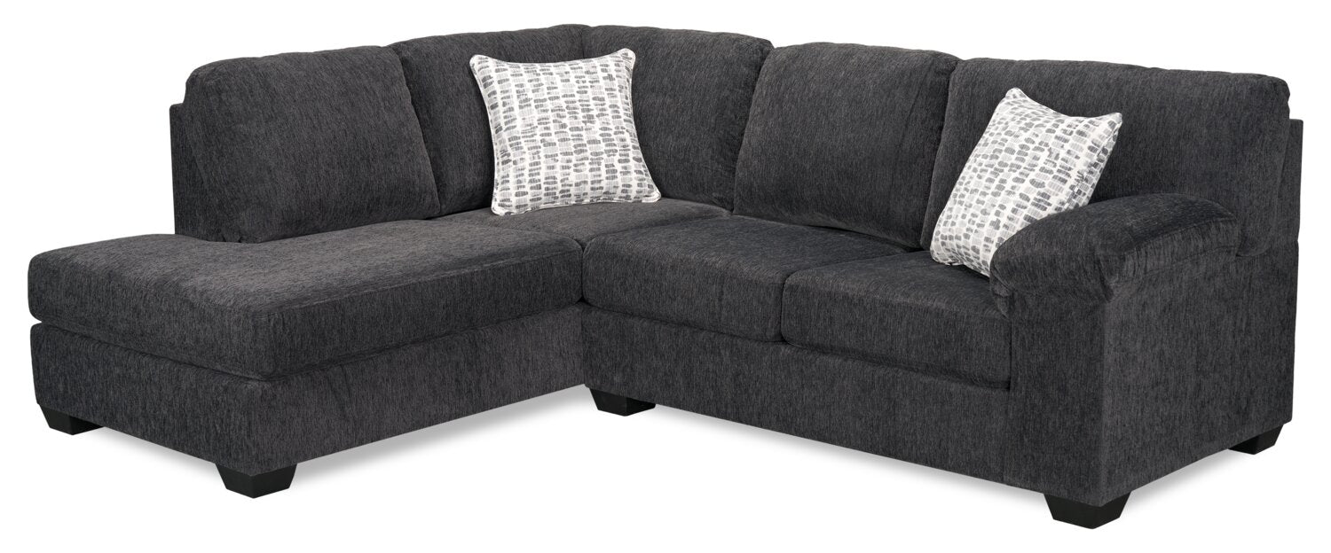 Made in Canada Morgan 2-Piece Left-Facing Chenille Fabric Sectional with Accent Pillows - Grey