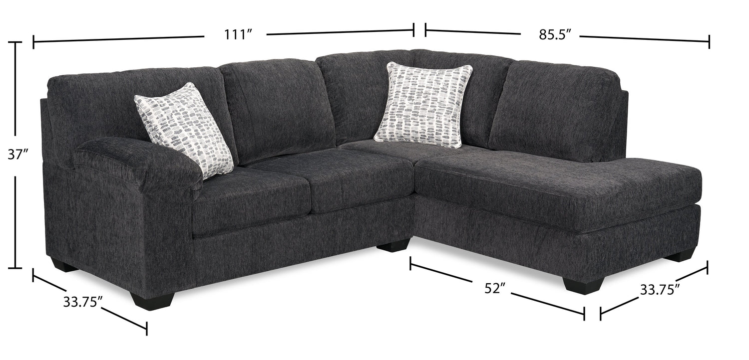 Made in Canada Morgan 2-Piece Right-Facing Chenille Fabric Sectional with Accent Pillows - Grey