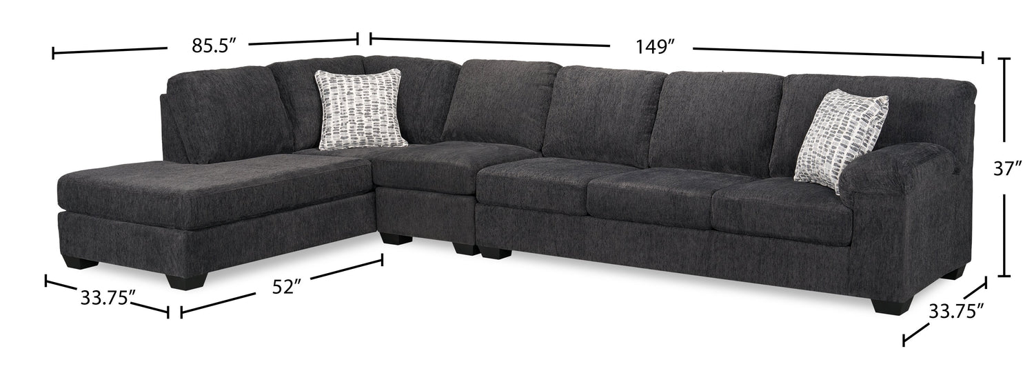 Made in Canada Morgan 3-Piece Left-Facing Chenille Fabric Sectional with Sofa and Accent Pillows - Grey