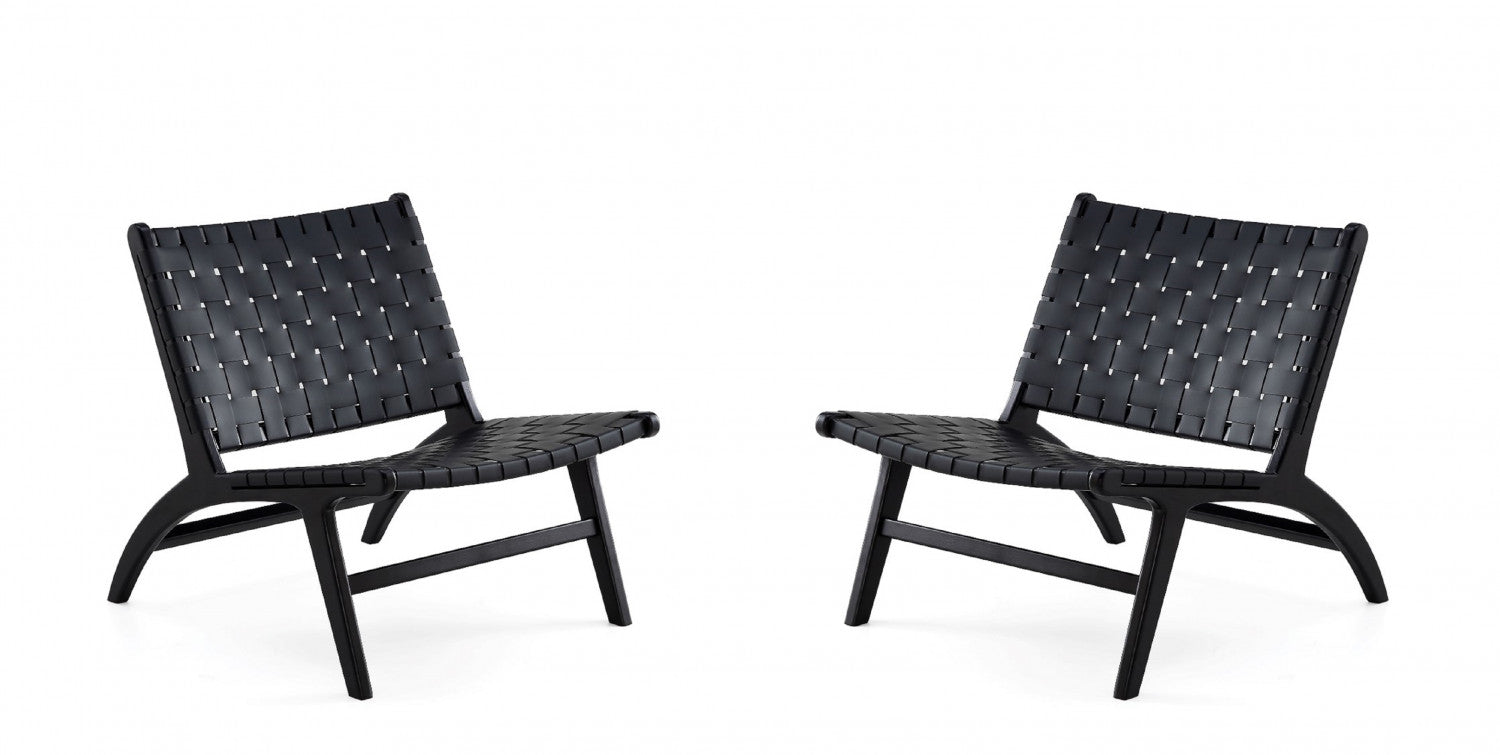 Maintenon Industry Chic Wood Vegan Leather Accent Chair in Black - Set of 2