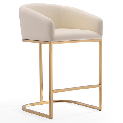 Manhattan Comfort Louvre 36" Stainless Steel Counter Height Barstool - Cream & Titanium Gold