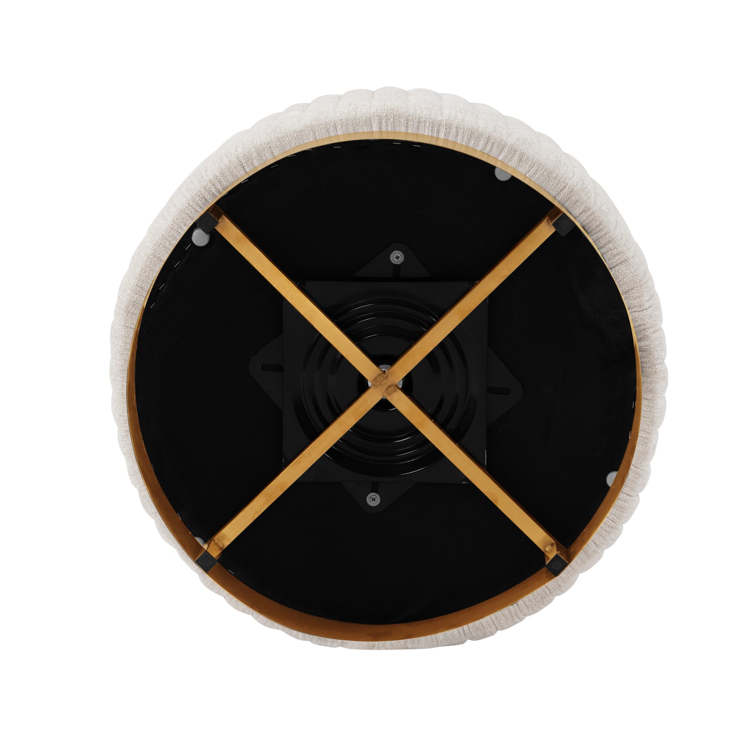 This chair boasts stunning vertical ribbed stitching on a 360-degree swivel golden base for a modern aesthetic. With inner seat dimensions of 21.26 inches in depth and width, it's perfect for unwinding in style.