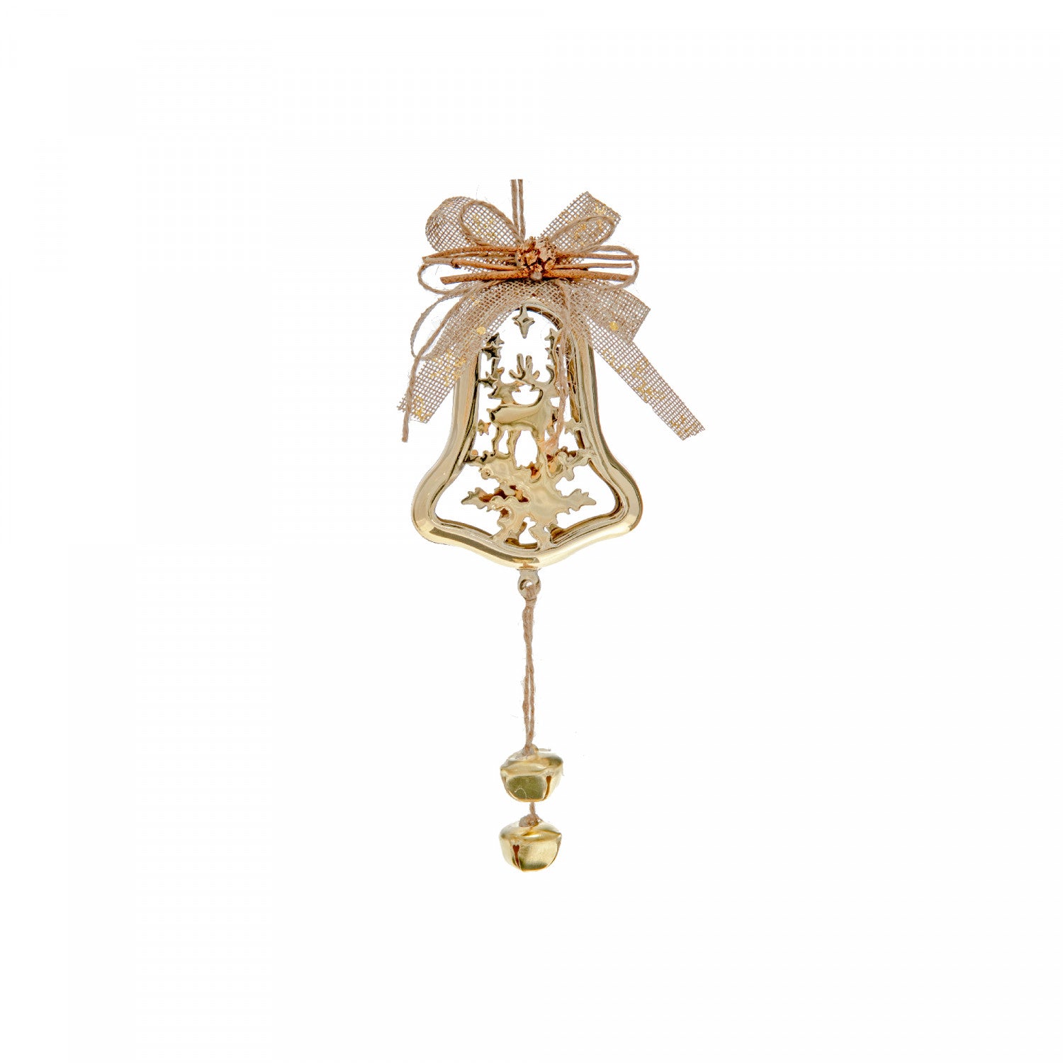 Metal Bell Shaped Ornament with Reindeer Gold - Set of 6 Christmas Ornaments