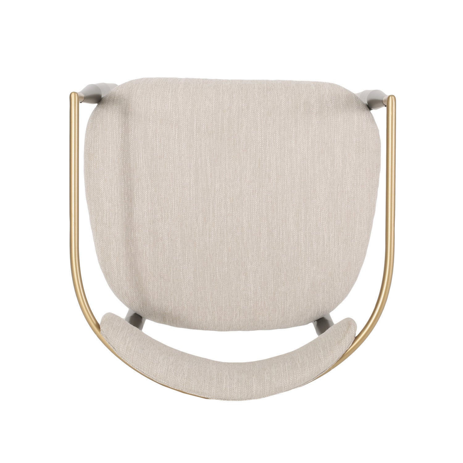 Elevate your dining space with the modern dining chair set. This pair of armchairs features sleek beige fabric upholstery,a curved open-back design, and plush foam padding for exceptional comfort. The iron frames are accented with gold trim and a matte black finish,offering both durability and a touch of luxury. Ideal for contemporary interiors,these chairs bring modern elegance and structure to your dining room. Whether hosting guests or enjoying daily meals,the chairs offer style and support. Assembly required;set includes two chairs with tools and instructions.