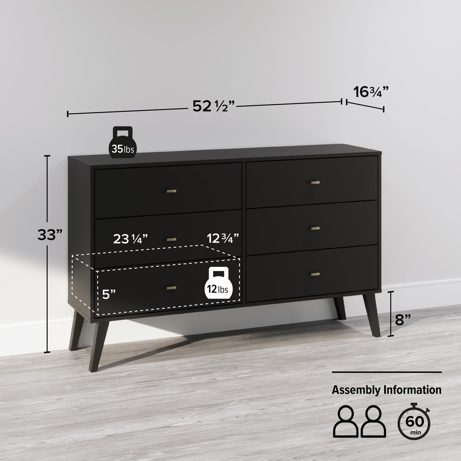 | Additional Information | Product Weight Limit: Per Drawer: 12 lbs ; On top: 35 lbs |