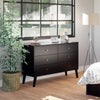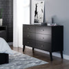 The Prepac Milo 6 drawer dresser is a modern take on a retro look, with a sleek mid-century modern design that adds a touch of vintage styling to your bedroom. Six drawers run smoothly on metal glides, offering easy access to storage for clothing and bedroom items. The tapered solid wood legs and inset drawers deliver a clean and modern look to your bedroom. Brushed brass finished knobs add to the retro-chic design of this functional and fashionable dresser. Style this dresser on its own, or combine it with any of the products in the Milo collection for a timeless look.