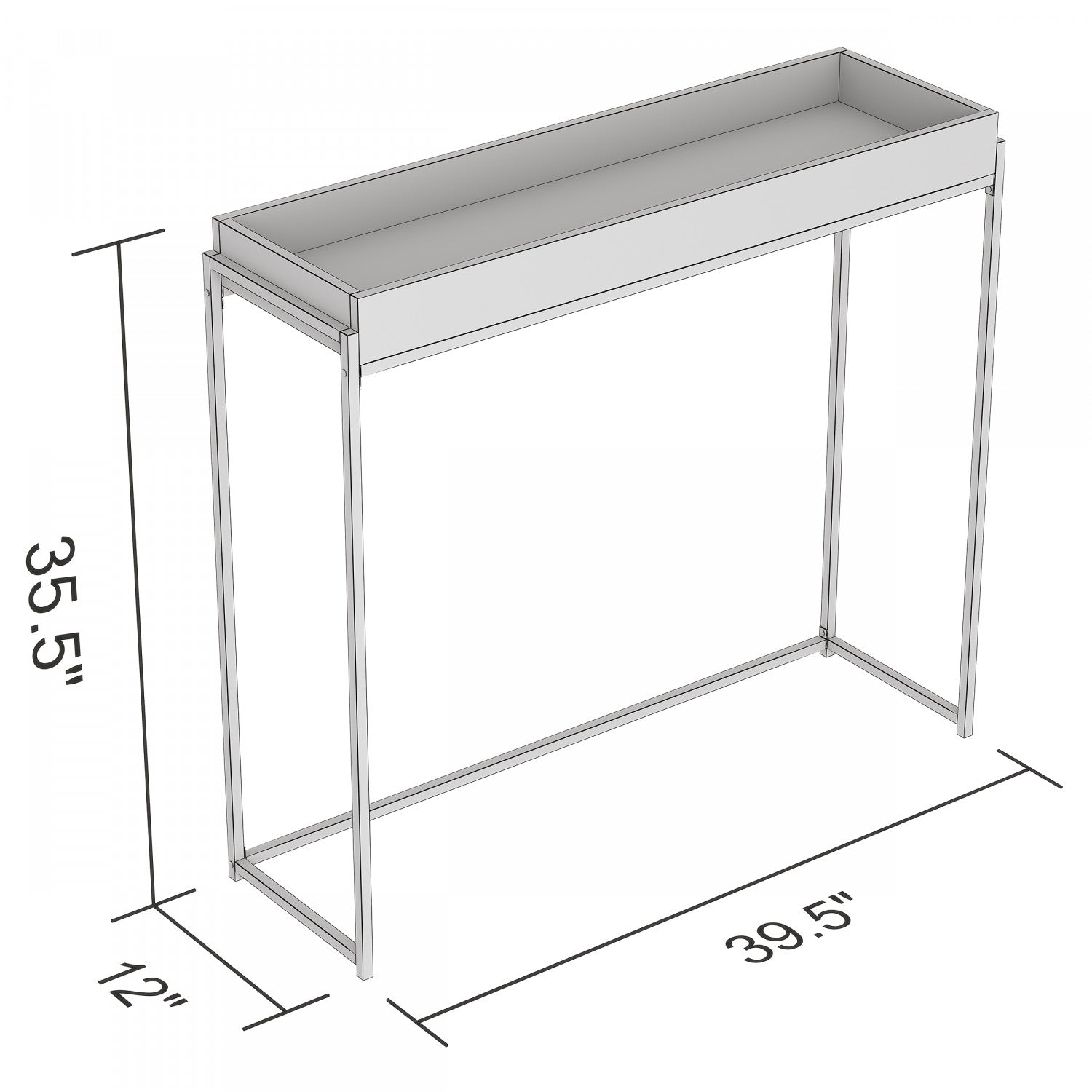 Add a touch of modern charm and functional elegance to your home with this beautifully crafted 39. 5” table featuring a unique sunken tray top. Designed with clean lines and a sturdy build, this versatile piece fits effortlessly into any room—whether it's your entryway, hallway, bedroom, or living area. The sunken tray adds visual interest while keeping your items neatly contained, making it perfect for displaying decor, organizing everyday essentials, or creating a stylish drop zone. Its contemporary silhouette blends seamlessly with a variety of interior styles, from minimalist to farmhouse-inspired. Compact yet impactful, it’s ideal for small spaces that deserve a standout piece without overwhelming the room. Whether you're styling it as a console table, side table, or decorative accent, it offers both beauty and purpose in equal measure. With its thoughtful design and timeless appeal, this table is the finishing touch your space has been waiting for. Let it bring a sense of balance and style to every corner of your home.