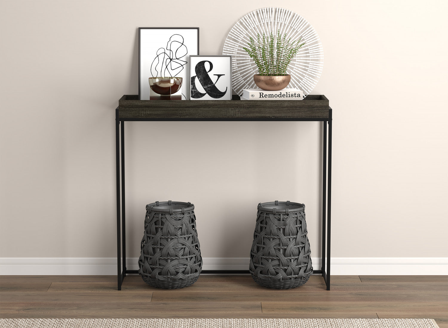 40” Modern Console Table With Sunkey Tray - Dark Grey With Black Metal
