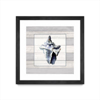 "Muted Blue Sea Conch On Wood" Matted and Framed Black 30x30 Wall Art
