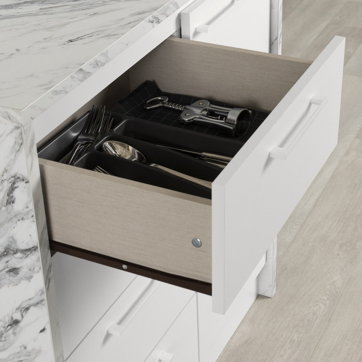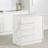 Whether you live in a condo, an apartment or a small house, this compact kitchen island with integrated storage will win you over. Featuring 4 drawers on metal runners, a door with removable shelf and a sturdy melamine surface, it's sure to get you in the mood to cook delicious food! Use the drawers to organize your utensils, dishcloths and other accessories. Behind the door, place your small appliances and adjust the shelf according to your needs. For even greater ease of use, the door features soft-closing hinges.