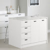 every time you're finally motivated to cook a good meal, you remember how impractical your kitchen is and the urge disappears right away? This kitchen island with built-in storage will instantly make you want to get out your pots and pans and start cooking! Whether you live in a house, a condo or an apartment, this worktop that has 4 drawers on metal runners, 2 doors behind which hides a removable shelf and a melamine surface will fit perfectly in your kitchen area. Placed against a wall or in the center of the room, it will give you all the space you need to prepare delicious meals and live unforgettable moments in good company. Add 2 stools to create a friendly gathering place. Focus on quality and durability, the melamine surface of this kitchen island is designed to last. In fact, it is not only water and scratch resistant, but also easy to clean. Cook with confidence without worrying about damaging your furniture. To enhance the farmhouse style of this practical piece of furniture, large black metal handles have been installed on the doors and drawers. By adding this multifunctional island to your kitchen, warmth, authenticity, and a rustic touch will take over your decor.