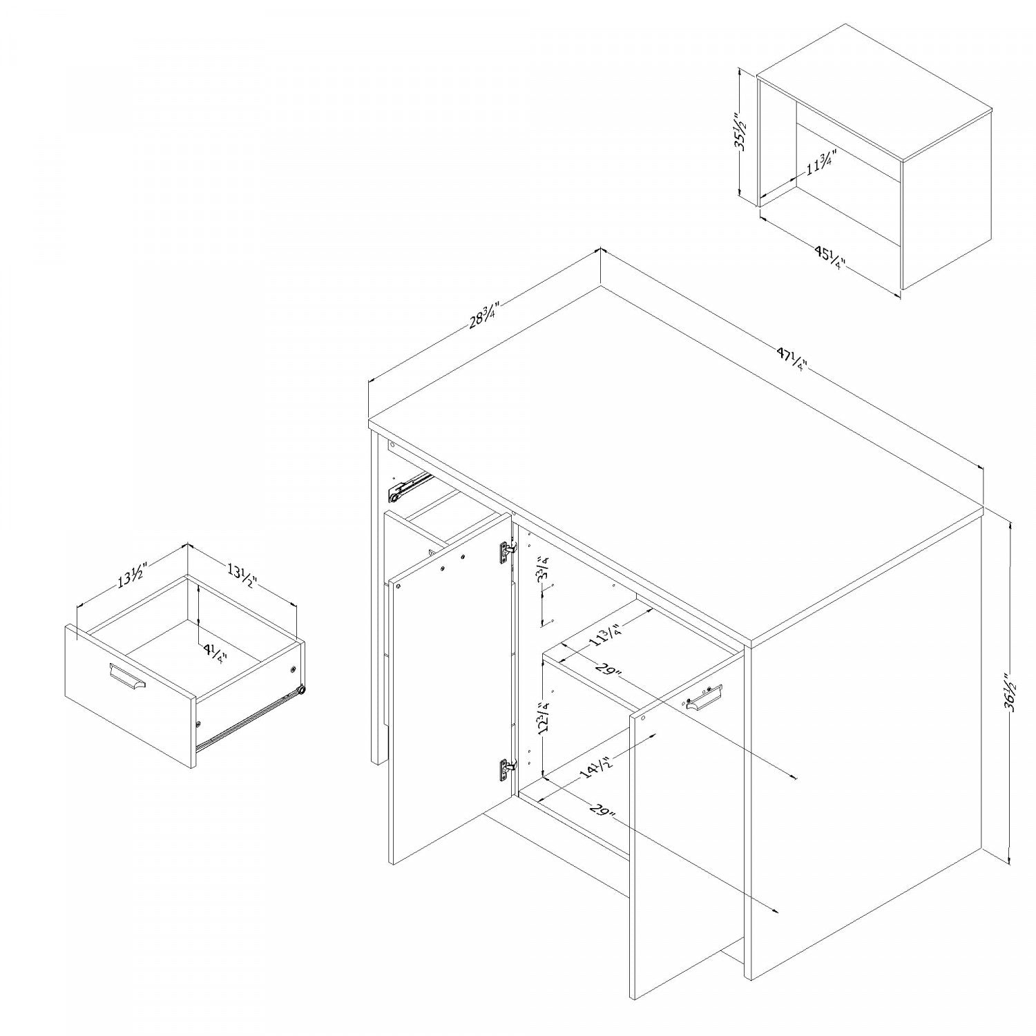 Width: 47.25" (120.0 cm) Height: 36.5" (92.7 cm) Depth: 28.75" (73.0 cm)
