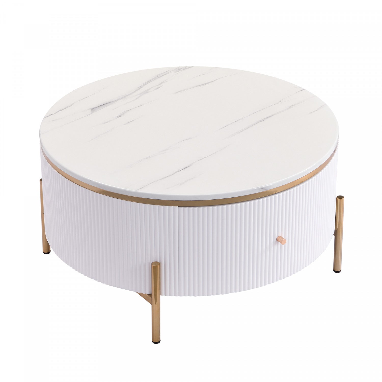 Nelson 31.5" Modern Round Coffee Table With 2 Storage Drawers, White