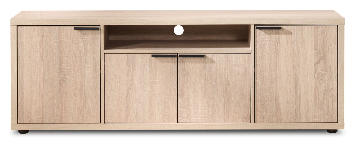 Bring a calm, cozy feel to your living room with the Noren TV stand. Designed to hold TVs up to 70 inches, it creates a comfortable spot for movie nights and everyday viewing. Open shelves offer space to display decor and store media, while adjustable shelving lets you tailor the layout to your needs. Plus, the soft, light oak finish adds warmth and character while keeping a clean, modern look. With plenty of storage and a sturdy design, the Noren TV stand keeps your living room feeling tidy, welcoming and ready for everyday living.