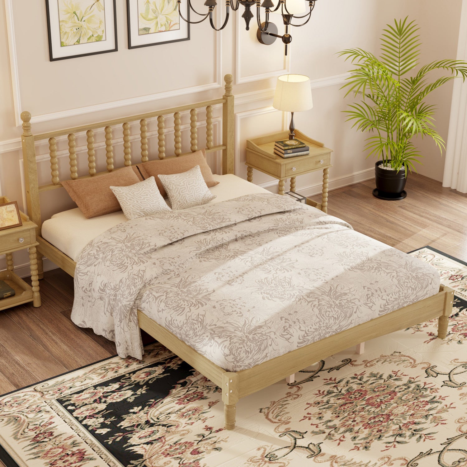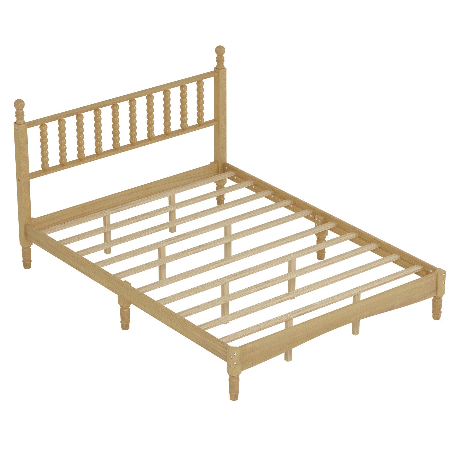 Oliver Retro Wood Platform Bed with Gourd Shaped Headboard and Sturdy Wooden Slat Support,Queen Size,Natural Queen Bed