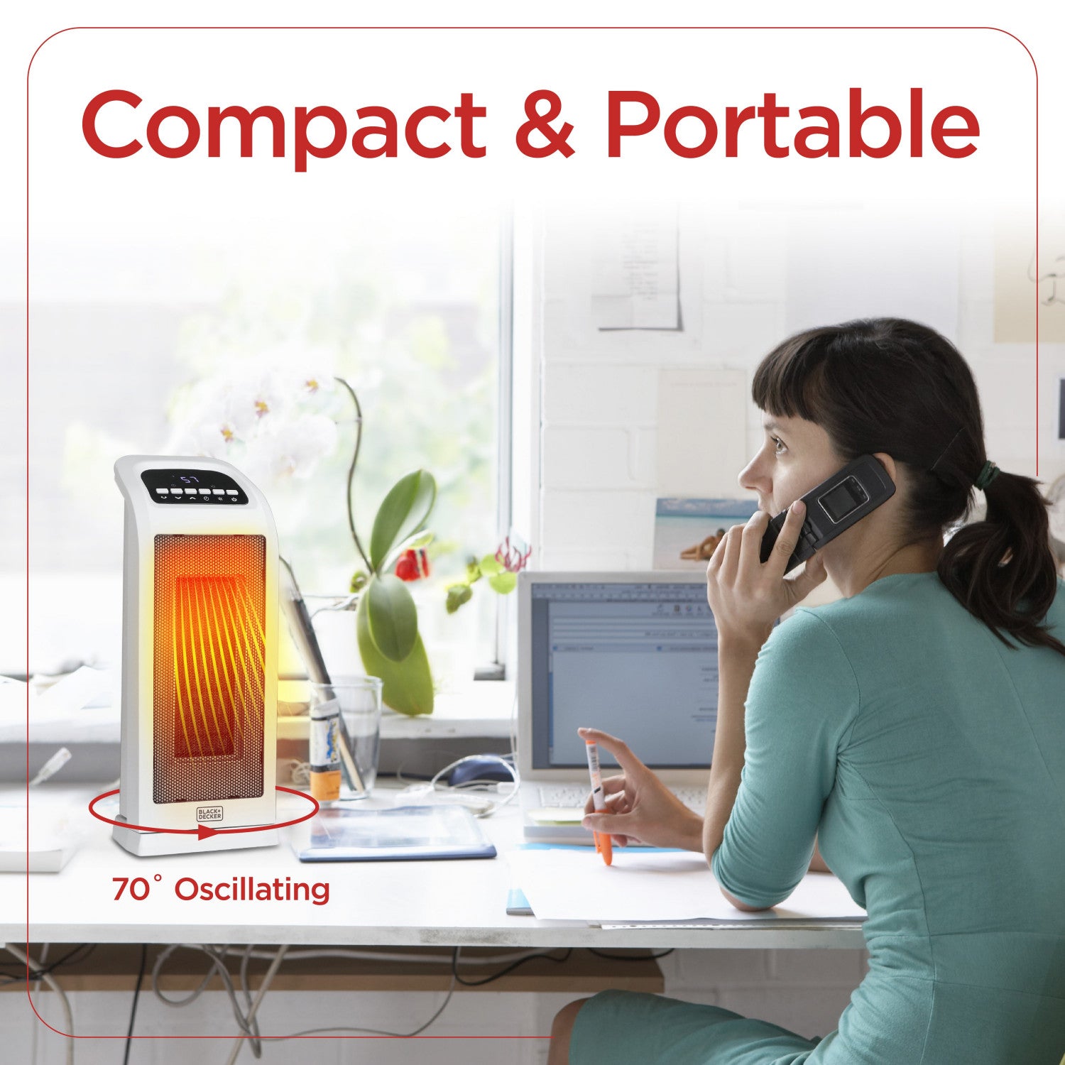 Recognized as one of the top portable heaters for indoor use, this electric space heater has a 70-degree oscillating function that ensures optimal heating coverage in larger rooms. Stay warm and cozy with Black+Decker, thanks to this exceptional and quiet 1500-watt heater designed for your comfort.