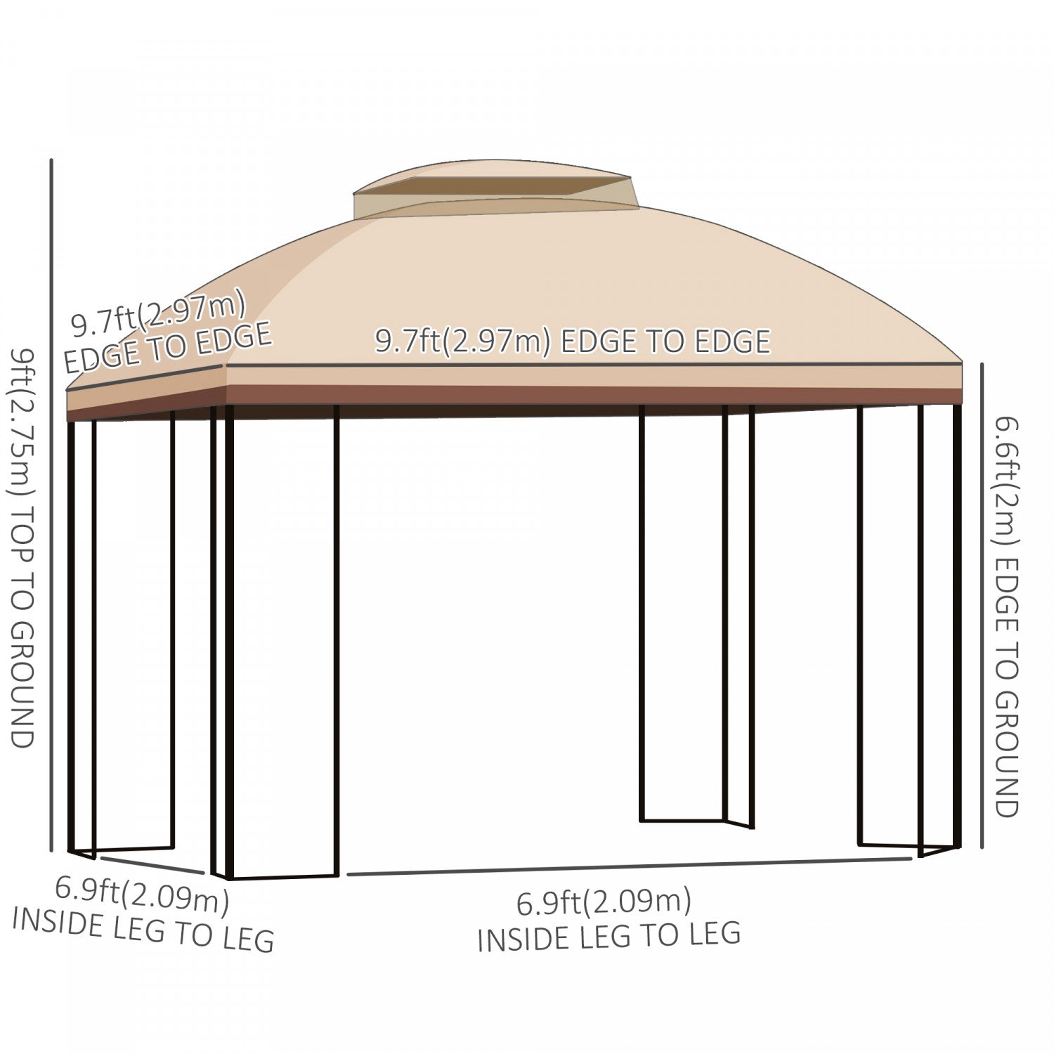 Outsunny 10' X 10' Outdoor Gazebo Canopy With Display Corner Shelves, Double Tier Roof, Removable Mesh Curtains - Beige